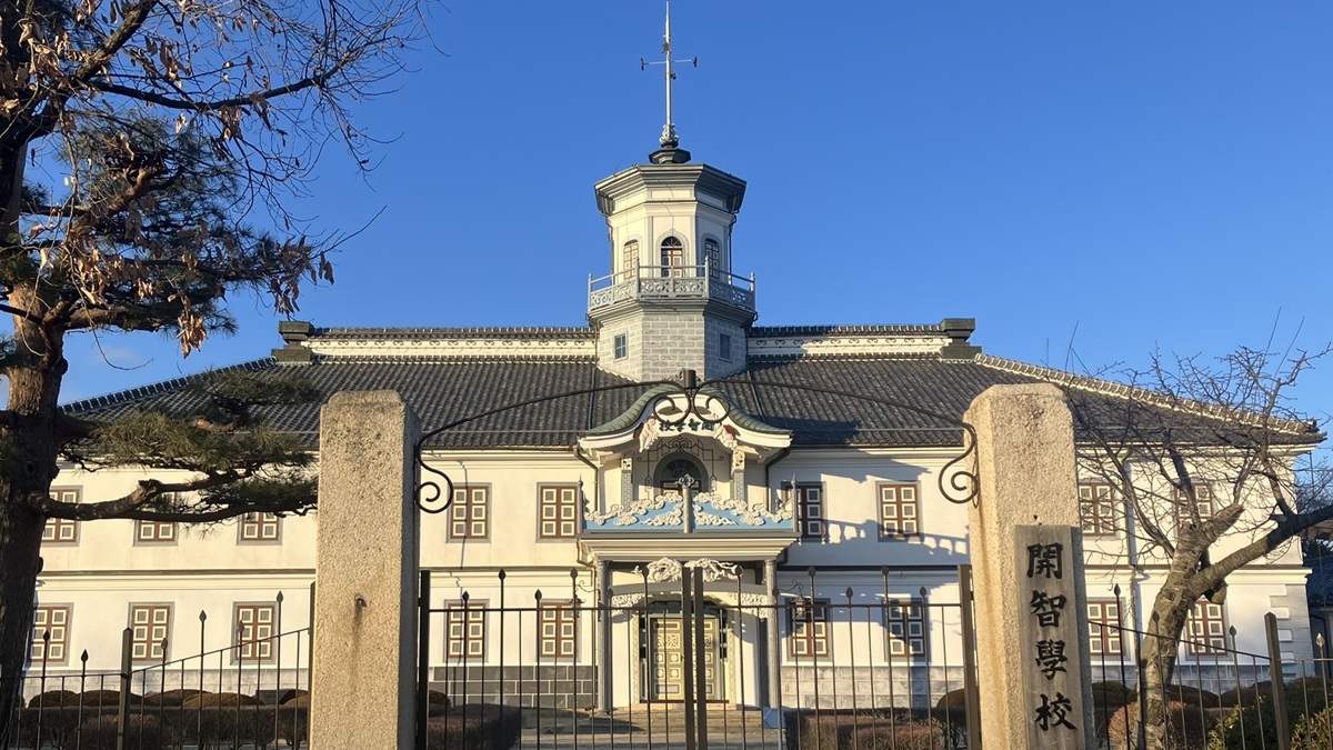 松本城からも歩ける距離の旧開智学校は、建物自体の見学だけでなく、内部には開智学校にまつわる資料が展示されています。 開智学校の看板を支える天使が西洋風でかわいいですが、実は和風建築の技術で建てられています。